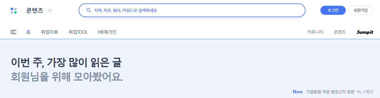 사람인_콘텐츠 메뉴 중, 취업 TOOL을 클릭하면 아래와 같은 페이지로 이동합니다.